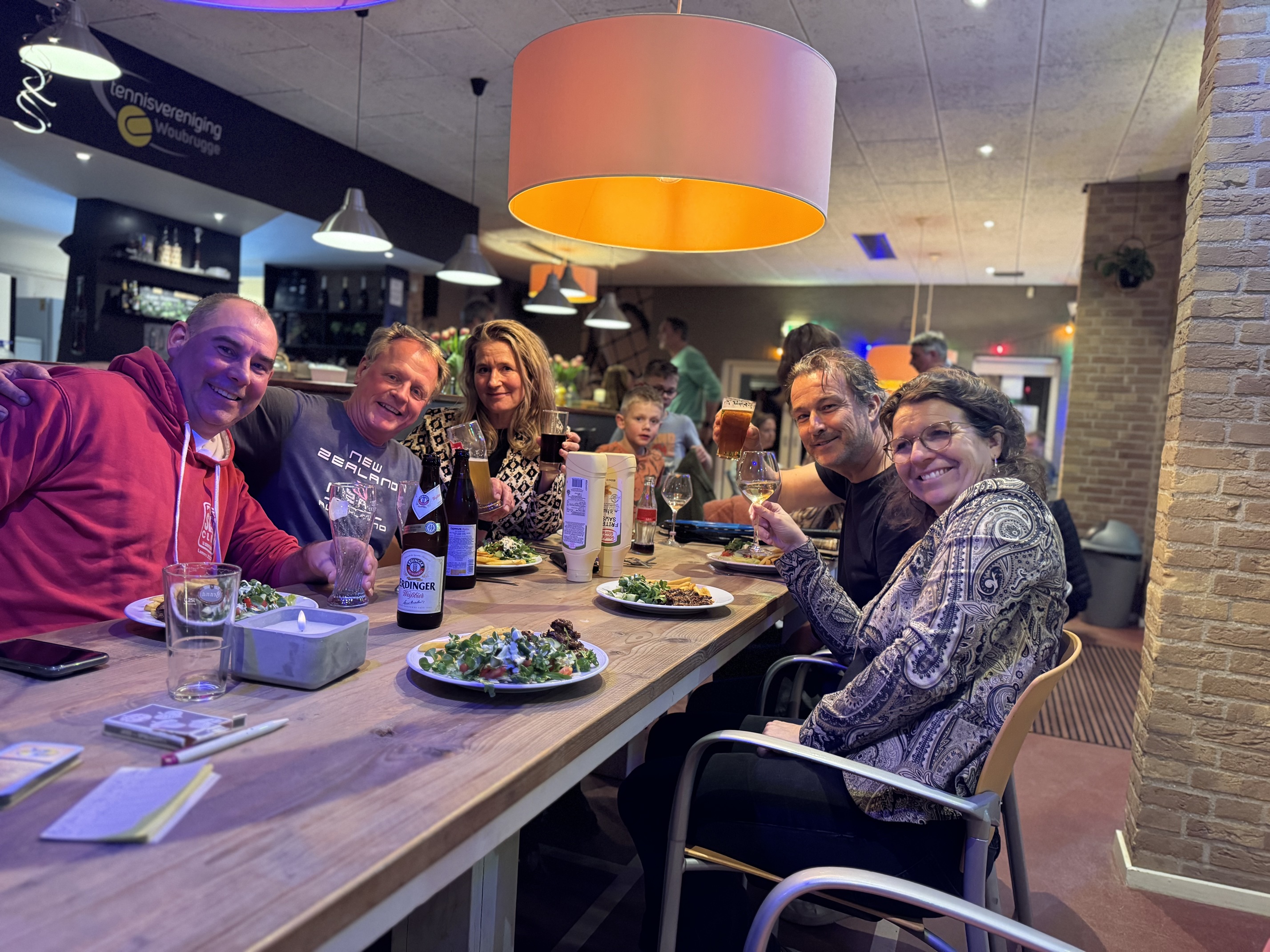 Op 7 maart was er een gezellige vrijmibo + maaltijd op de club. En het weer werkte mee met een temperatuur die tot laat in de avond dubbele cijfers liet zien en dus kon er ook getennist worden (we zouden het bijna vergeten...)